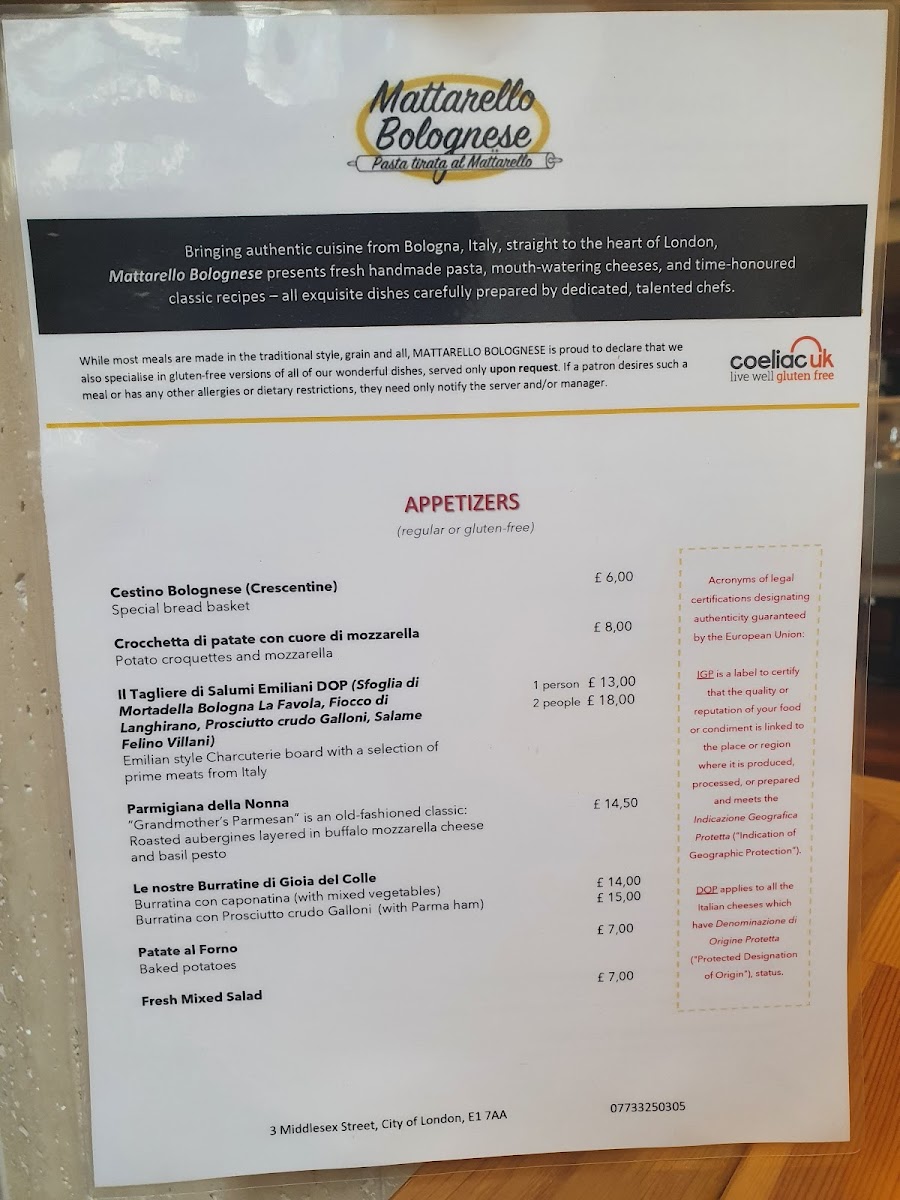 Introducing the menu of Mattarello Bolognese Restaurant is a culinary journey through authentic Italian flavors. Nestled in a tranquil corner of London, this restaurant stands out by offering a fully gluten-free menu, making it a haven for those with dietary restrictions. The options are extensive, featuring delightfully crafted dishes like Balanzoni and delectable desserts such as chocolate tortino, all prepared in a dedicated kitchen for gluten-free meals.